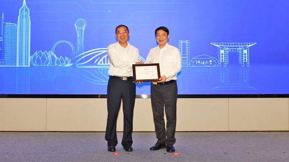 校長(zhǎng)楊桂山為謝億民院士頒發(fā)聘書
