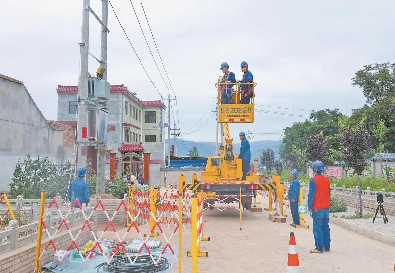 供電員工對(duì)天水市麥積區(qū)渭南鎮(zhèn)吳村1號(hào)臺(tái)區(qū)開展標(biāo)準(zhǔn)化改造。 王宇琪 攝