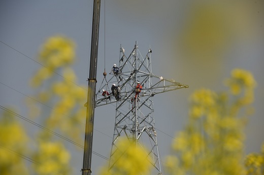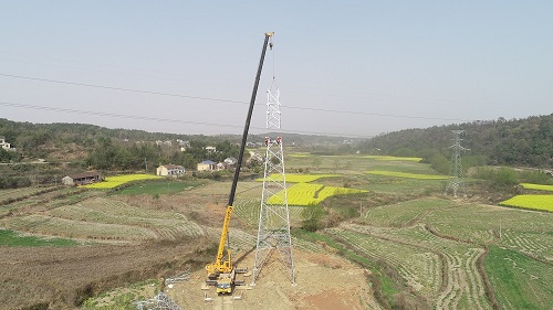 中國電力網(wǎng)訊(通訊員鄒小民、郭暉、朱景明)3月15日,在湖北宜都市枝城鎮(zhèn)何陽店村宜昌-荊州江南220千伏電網(wǎng)優(yōu)化工程53號(hào)桿塔施工場,國網(wǎng)湖北送變電公司施工人員吊裝鐵塔,加快推進(jìn)宜昌-荊州江南220千伏電網(wǎng)優(yōu)化工程建設(shè),工程投產(chǎn)后將增容電力“大動(dòng)脈”,提升輸送能力。