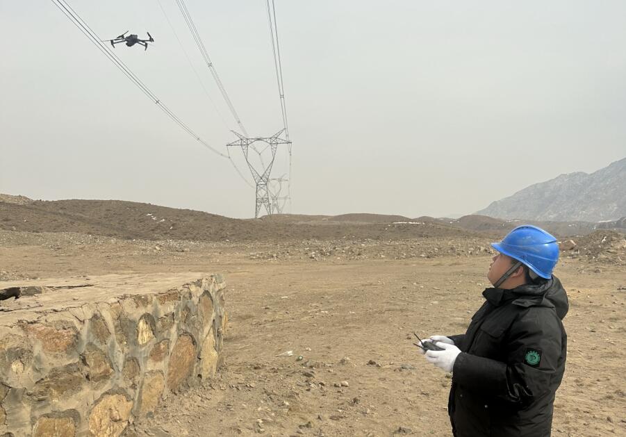 “伴隨著螺旋槳的嗡嗡聲,保電人員操控著無人機向著高處的導(dǎo)線飛去,細致排查線路運行情況”。3月3日,輸電管理處鄂爾多斯地區(qū)保電人員利用無人機對500千伏布烏雙回線、500千伏迪勒雙回線“三跨”塔段開展特巡,及時掌握線路狀態(tài)。為保障兩會期間線路可靠運行,輸電管理處詳細制定保供電方案和應(yīng)急預(yù)案,全方位強化運維保障工作。從加強線路巡視入手,在烏海、鄂爾多斯、巴盟及阿拉善地區(qū)建立4支動態(tài)巡視小組共計58人、13臺保電車輛,針對24條輸電線路運用“人工+可視化+無人機”運維手段全線24小時不間斷巡視,保障重要電力通道安全穩(wěn)定。