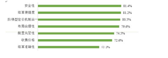 四是充電樁安全性、結(jié)算便捷性滿(mǎn)意度較高,滿(mǎn)意度均在80%以上,充電價(jià)格、結(jié)算準(zhǔn)確性有待進(jìn)一步提升。由此表明,受訪(fǎng)者在充電收費(fèi)價(jià)格和結(jié)算準(zhǔn)確性方面期待較高,期望進(jìn)一步優(yōu)化充電收費(fèi)價(jià)格,提高結(jié)算準(zhǔn)確性。