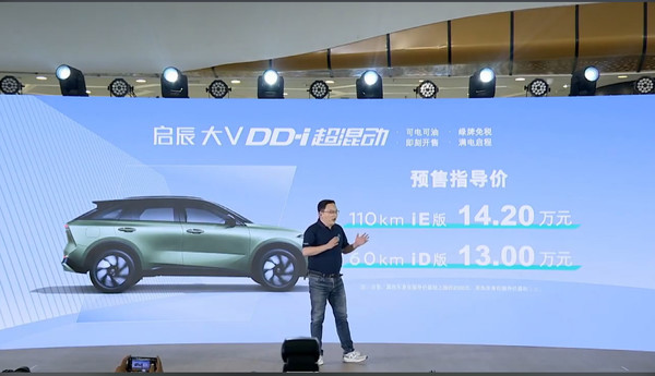 6月3日,東風(fēng)日產(chǎn)啟辰旗下大V DD-i超混動(dòng)正式開啟預(yù)售,新車推出60km iD版及110km iE版兩大版本。其中,啟辰大V DD-i 60km iD版預(yù)售指導(dǎo)價(jià)為13萬元,啟辰大V DD-i 110km iE版預(yù)售指導(dǎo)價(jià)為14.2萬元。對于東風(fēng)日產(chǎn)啟辰而言,大V DD-i超混動(dòng)的預(yù)售意味著公司將加速新能源轉(zhuǎn)型戰(zhàn)略的落地。