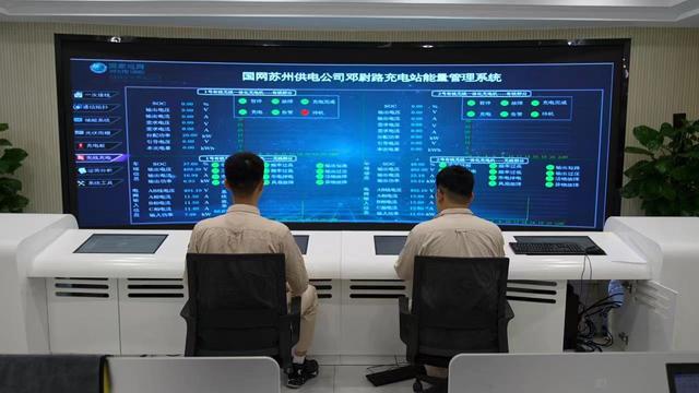 國網(wǎng)蘇州供電公司工作人員利用監(jiān)控運營管理系統(tǒng),對無線充電樁進行就地監(jiān)控和能量管理。