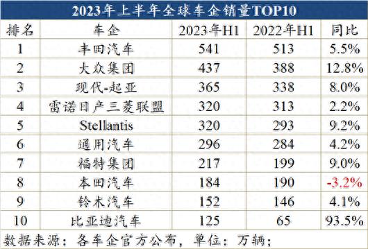 今年上半年,憑借著125萬輛的成績,全球新能源市場兩大巨頭之一的比亞迪,首次躋身全球車企銷量十強(qiáng),超過了常年在榜單中占有一席之地的寶馬集團(tuán)和梅賽德斯-奔馳集團(tuán)。