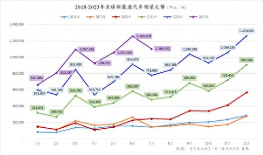 參考?xì)v年來的走勢,可知今年剩下5個月全球新能源市場的單月銷量應(yīng)該都將保持在110萬輛以上。
