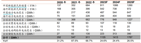 圖:全球鋰電池(含儲能)需求估計(jì)。資料來源:GGII、EVTank、招商證券