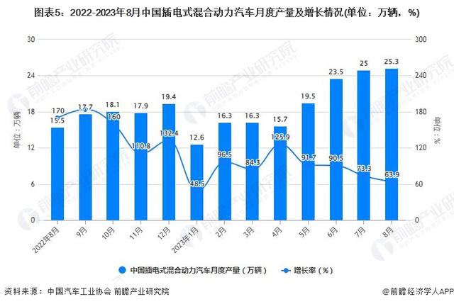 據(jù)中國(guó)汽車工業(yè)協(xié)會(huì)統(tǒng)計(jì)數(shù)據(jù)顯示,2022年全年月中國(guó)插電式混合動(dòng)力汽車產(chǎn)銷累計(jì)分別完成158.8萬(wàn)輛和151.8萬(wàn)輛,累計(jì)分別增長(zhǎng)164.1%和151.6%。截至2023年8月中國(guó)插電式混合動(dòng)力汽車產(chǎn)銷分別完成25.3萬(wàn)輛和24.9萬(wàn)輛,同比分別增長(zhǎng)63.9%和72.8%。
