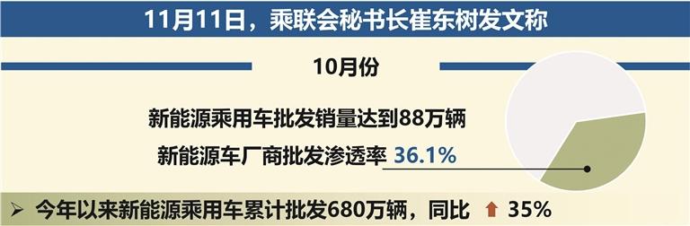全國新能源乘用車10月份批發(fā)銷量88萬輛