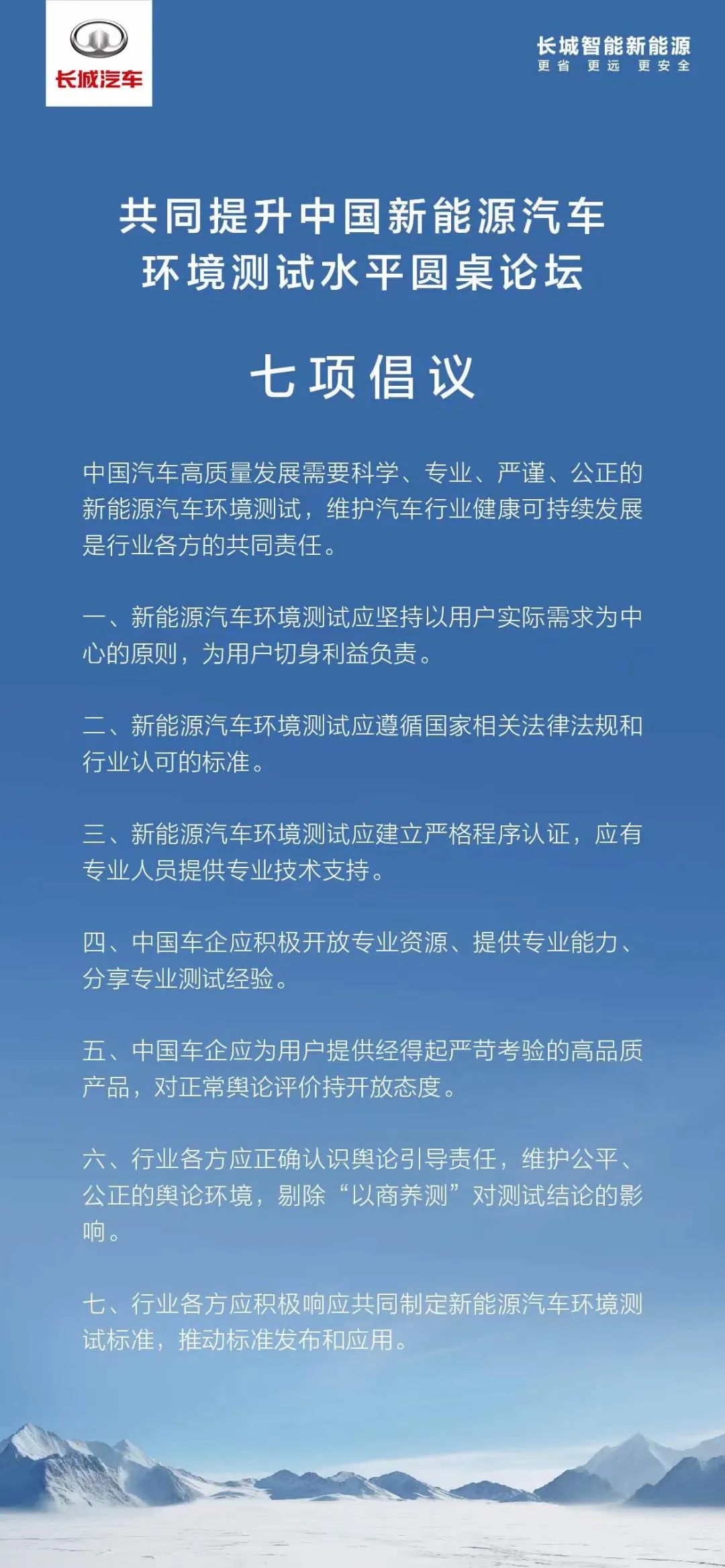 在《共同提升中國新能源汽車環(huán)境測試水平圓桌論壇》上,會議提出七項(xiàng)倡議并指出,中國汽車高質(zhì)量發(fā)展需要科學(xué)、專業(yè)、嚴(yán)謹(jǐn)、公正的新能源汽車環(huán)境測試,維護(hù)汽車行業(yè)健康可持續(xù)發(fā)展是行業(yè)各方的共同責(zé)任。