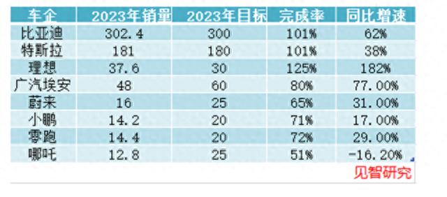 2023年中國新能源汽車市場競爭激烈,頭部車企普遍完成年度銷量目標(biāo),但其他新勢力車企表現(xiàn)不佳,與頭部車企的增速相比普遍偏低,部分甚至出現(xiàn)負(fù)增長。