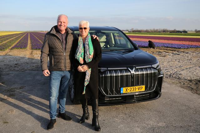 3月25日,荷蘭消費(fèi)者埃里克·贊德貝亨和他的妻子埃倫在嵐圖汽車前合影。新華社記者趙丁喆攝