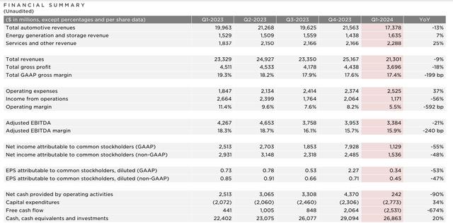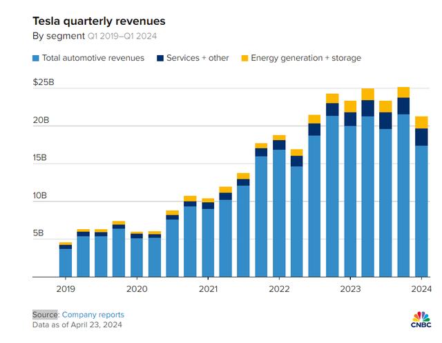 財(cái)報(bào)顯示,特斯拉一季度營收同比下降9%至213億美元,低于市場預(yù)期的223億美元,既是2020年二季度新冠疫情擾亂運(yùn)營以來的近四年里首次同比下滑,也是2012年以來最大降幅,較去年四季度的251.7億美元環(huán)比下滑超15%,主要由于全球?qū)﹄妱?dòng)汽車的需求放緩。