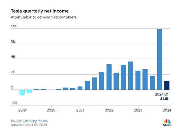 由于對交付疲軟、中國競爭和公司持續(xù)降價(jià)的擔(dān)憂,特斯拉股價(jià)今年暴跌了40%以上。本月早些時(shí)候,特斯拉公布第一季度汽車交付量同比下降8.5%。