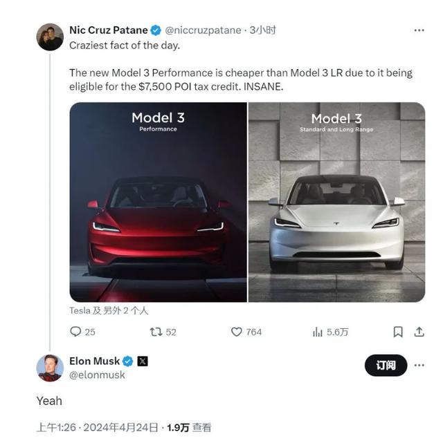 雖然美國網(wǎng)友一開始的關(guān)注焦點(diǎn)還是這輛車的續(xù)航里程,但很快就被價(jià)格引發(fā)的熱議蓋過了——美國網(wǎng)友驚奇的發(fā)現(xiàn),由于美國現(xiàn)行的電動(dòng)車補(bǔ)貼政策,新的高性能版竟然要比標(biāo)準(zhǔn)長續(xù)航版還要便宜!
