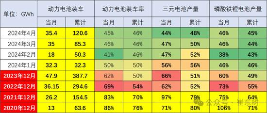 5月18日,乘聯(lián)會秘書長崔東樹撰文指出,目前動(dòng)力電池的產(chǎn)量中裝車的比例在不斷降低。2020年動(dòng)力電池裝車率達(dá)到76%,2021年是70%,2022年是54%,2023年是50%,2024年1-4月已經(jīng)降到了46%。