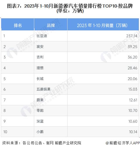 從銷量方面來(lái)看,2023年1至10月,我國(guó)新能源汽車銷量第一名的品牌為比亞迪,以237.14萬(wàn)輛遙遙領(lǐng)先全行業(yè)。第二名為廣汽埃安,銷量為39.25萬(wàn)輛;第三名為吉利汽車,銷量為36.20萬(wàn)輛。造車新勢(shì)力三大車企中,理想排名第四,銷量為28.46萬(wàn)萬(wàn)輛,小鵬排名第十,銷量為10.14萬(wàn)輛,蔚來(lái)排名七,銷量為12.61萬(wàn)輛??傮w來(lái)看,2023年1至10月,傳統(tǒng)車企新能源汽車銷量總體好于造車新勢(shì)力。