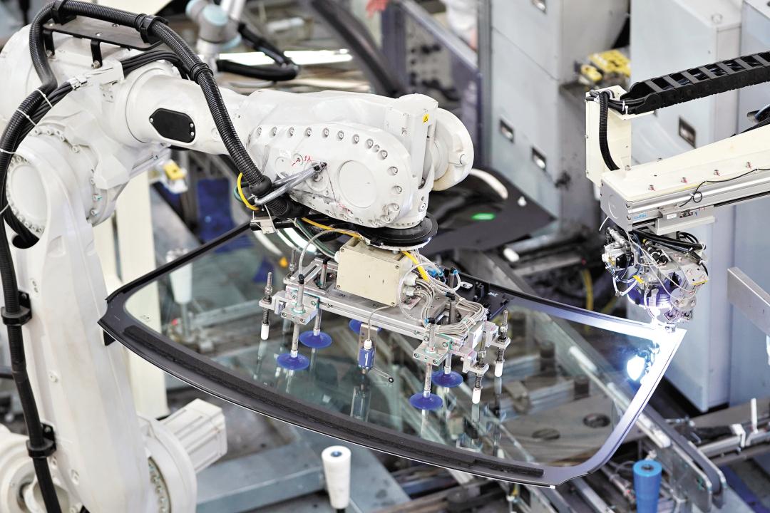 前后擋風(fēng)玻璃安裝站是一個多機(jī)器人融合的工位。