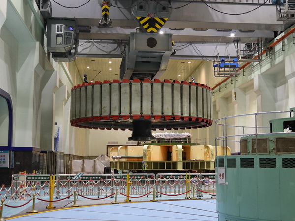 中國電力網(wǎng)訊 4月29日上午,記者在國網(wǎng)甘肅劉家峽水電廠廠房內(nèi)看到,在現(xiàn)場起重指揮的哨聲下,該廠700多噸的4號發(fā)電機(jī)轉(zhuǎn)子,經(jīng)過三起三落的試探性起吊后順利回裝至發(fā)電機(jī)定子中央,標(biāo)志著該廠號4號機(jī)組A級檢修及定子改造工程進(jìn)入了關(guān)鍵階段。