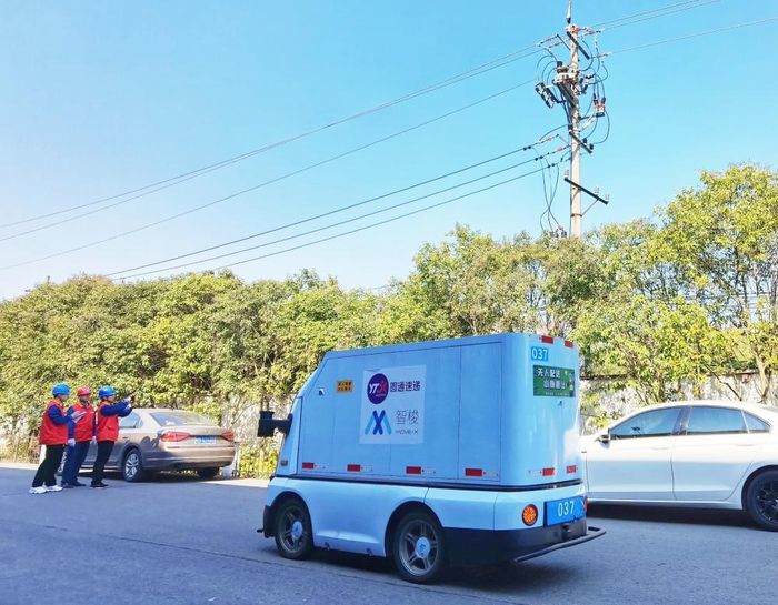 “六十三號智能配送車電量充足,已經(jīng)駛?cè)肴柵渌途€路。”11月11日,一臺藍(lán)白相間的無人駕駛電動貨車滿載著快遞包裹,從南陵縣宇培物流工業(yè)園區(qū)配送中心駛出,奔赴城區(qū)的快遞驛站。該園區(qū)配送管理人員韓師傅介紹,“雙十一”期間,類似這樣的智能配送車每天要從他們的園區(qū)發(fā)出約210車次。