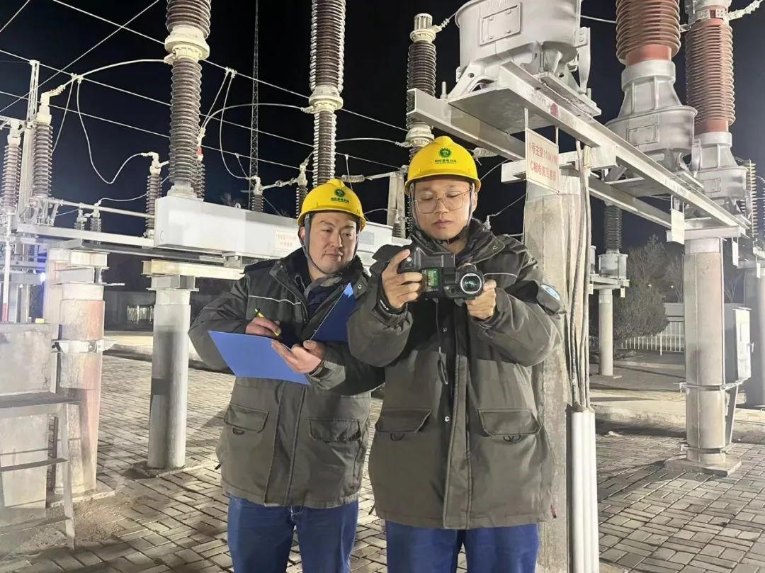 該站除主站外,下轄4座110千伏變電站、2座35千伏變電站,是一座為葡萄墩工業(yè)園區(qū)及周邊農(nóng)牧民提供電力保障的樞紐變電站,同時也肩負(fù)著清潔能源并網(wǎng)發(fā)電的職責(zé)。春節(jié)將近,該站所在的騰格里地區(qū)突降大雪,室外溫度低至零下20攝氏度。“針對這輪寒潮,氣象局發(fā)布了雨雪冰凍藍(lán)色預(yù)警通知,這兒是重點(diǎn)降溫地區(qū),咱們每天增加3輪特巡,設(shè)備線夾、引線接頭都是十分容易凍脹的部位,大家要重點(diǎn)關(guān)注檢查。”馬小兵一邊測試紅外測溫儀,一邊和李富忠交流巡視要點(diǎn)。