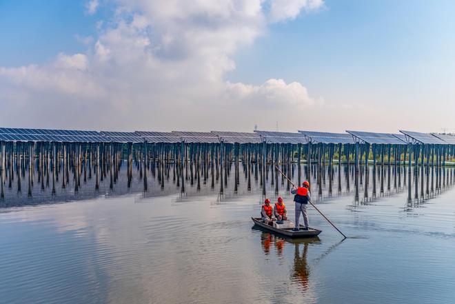 國網(wǎng)南京供電公司工作人員對六合通威“漁光一體”光伏電站進(jìn)行檢查