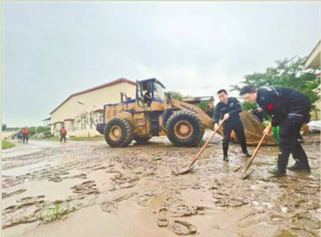 由于站房內(nèi)外淤泥較深,先批到達的特戰(zhàn)隊員立即開始清淤工作。清理完畢后,大家將受損的設備拆除沖洗,頂著正午的烈日將設備擦拭和烘干。工作服的顏色逐漸深了下去,每張沁滿汗水的臉頰上都寫著“爭分奪秒”四個字。