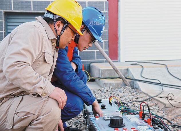 時間一分一秒過去,風越來越大,氣溫越來越低。寒風中,檢修人員手僵了,就用嘴哈氣暖和一下,接著再干。17時,他們完成了110千伏巴達線間隔設(shè)備安裝任務(wù)。