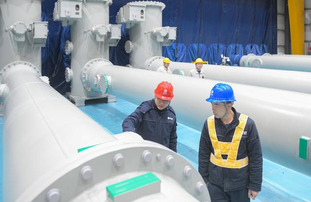 2024年1月30日,川渝特高壓交流工程1000千伏銅梁變電站,國網(wǎng)重慶市電力公司施工管理人員在1000千伏GIS移動(dòng)無塵裝配車間進(jìn)行氣室壓力檢查。記者 張錦輝 攝/視覺重慶