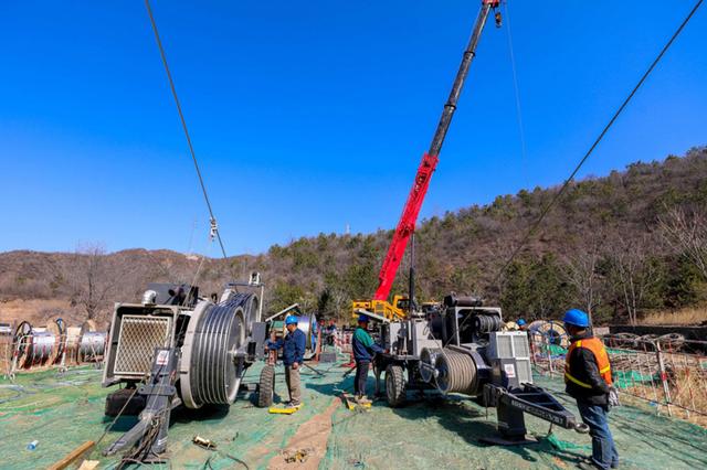 國網(wǎng)北京門頭溝供電公司110千伏清水輸變電工程導地線展放施工現(xiàn)場(張文靜 攝)
