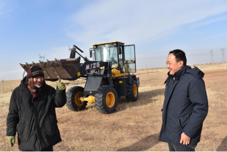 為完成老鄉(xiāng)新房通電的訴求,李平多次開(kāi)展現(xiàn)場(chǎng)踏勘,積極奔走協(xié)調(diào)旗政府相關(guān)部門,聯(lián)合內(nèi)蒙古電力鄂托克前旗供電局等有關(guān)單位溝通研討送電事宜。11月28日,通往朝日格圖家的10千伏輸電線路正式開(kāi)工,李平冒著零下15度的嚴(yán)寒前往現(xiàn)場(chǎng)監(jiān)督施工進(jìn)度,在冬日鄂爾多斯高原的夕陽(yáng)下,一條承載著牧民用電希望的銀色緞帶在哈沙圖牧場(chǎng)迅速升起。