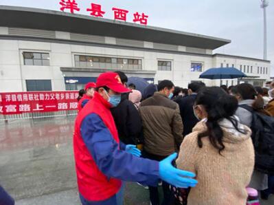 青年戰(zhàn)“疫”突擊隊攜帶一次性雨衣、純凈水等物資前往洋縣西站,參與了運送農(nóng)民工復(fù)工返崗高鐵專列的志愿服務(wù)活動,不畏風(fēng)雨積極助力復(fù)工復(fù)產(chǎn)。