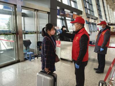 上午9時,20余名志愿服務(wù)隊員頭戴“小紅帽”、身穿“紅馬甲”,在城固縣柳林機場主動擔(dān)當(dāng)路口值守、旅客體溫測量、防控知識宣傳、疫情排查等工作。
