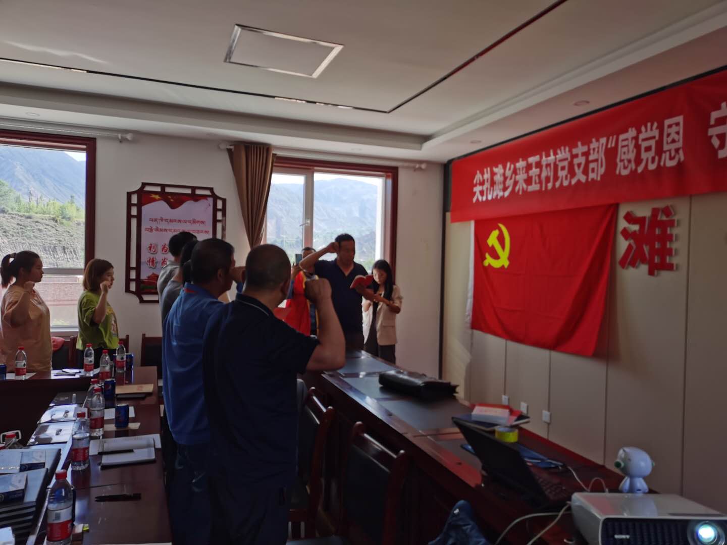 在尖扎來玉村黨員活動室內(nèi),兩支部全體黨員在來玉村黨支部才讓加書記帶領(lǐng)下,面對黨旗,高舉右拳,用藏語和漢語兩種語言重溫入黨誓詞。雖然語言不同,但是每名黨員口中喊出的錚錚誓言,字字句句,神圣而豪邁,依舊強烈震撼著每一位黨員的心,更加堅定了大家“對黨忠誠,積極工作,為共產(chǎn)主義奮斗終身”的理想信念。宣誓結(jié)束后,兩支部全體黨員、認真觀看了愛國主義紀錄片《紅色氣質(zhì)》,通過紀錄片的介紹,使全體黨員進一步了解了黨99年的光輝歷程,同時珍惜得來不易的和平、幸福的生活。紀念這段歷史是為了讓廣大黨員知道今天的幸福生活來之不易,為了明天的美好生活,作為新時代的黨員還需加倍努力。