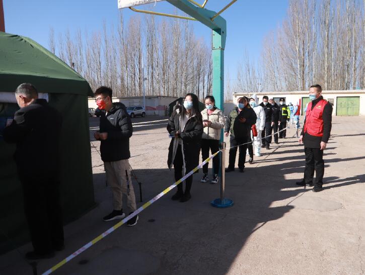 從晨光熹微到正午時(shí)分,在核酸檢測(cè)現(xiàn)場(chǎng),黨員志愿服務(wù)隊(duì)的成員們宣傳、普及檢測(cè)程序,維護(hù)現(xiàn)場(chǎng)秩序,通知居民及時(shí)參與檢測(cè),告知居民在核酸采樣期間聽(tīng)從指揮、全程佩戴口罩,有序完成掃碼、登記、采樣工作流程。“大爺,您把手機(jī)打開(kāi),我們幫您打開(kāi)健康碼。”“我們有兩條檢測(cè)通道,請(qǐng)大家有序進(jìn)行核酸檢測(cè)。”志愿者們截止當(dāng)天下午14點(diǎn),共配合完成390余名居民核酸檢測(cè)志愿服務(wù)工作。同時(shí),為了做好此次全員核酸檢測(cè)工作,杭錦供電公司第一時(shí)間啟動(dòng)專項(xiàng)保電工作,及時(shí)聯(lián)絡(luò)相關(guān)街道、社區(qū)、疫情防控點(diǎn)及核酸檢測(cè)點(diǎn),了解重點(diǎn)場(chǎng)所的用電情況與用電需求,對(duì)電網(wǎng)線路、設(shè)備開(kāi)展特殊巡視,全面開(kāi)展保電工作,保證重點(diǎn)區(qū)域正常用電。同時(shí),由“電駱駝”志愿服務(wù)隊(duì)黨員示范崗帶頭,各部門(mén)、班組積極響應(yīng),對(duì)包聯(lián)小區(qū)周圍的商戶和小區(qū)內(nèi)的居民都進(jìn)行了地毯式的信息統(tǒng)計(jì)。閆恒作為黨員示范崗之一,也是這次疫情防控的主要負(fù)責(zé)人,主動(dòng)承擔(dān)起排查包聯(lián)小區(qū)人員信息及其他工作要求,一遍一遍核對(duì)包聯(lián)住戶信息,有聯(lián)系不到的住戶他便主動(dòng)上門(mén)了解情況,生怕漏掉任何一戶信息。