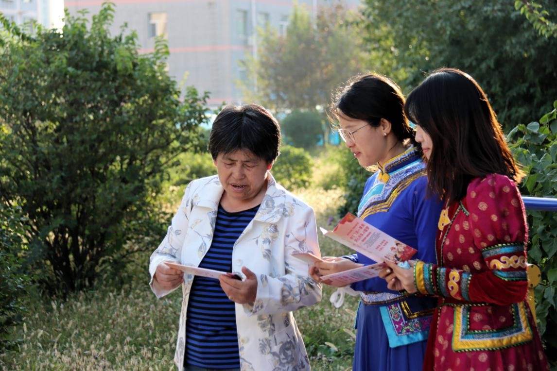 活動中,黨員同志們集中開展黨的民族理論政策宣傳,生動形象闡述民族團結(jié)、“三個離不開”、“四個不動搖”等民族政策,進一步增強社區(qū)居民對中華民族這一共有身份的認同感、歸屬感和責任感,拉近各民族情感,凝聚民族團結(jié)進步正能量。生動有趣的活動現(xiàn)場吸引了社區(qū)里眾多群眾的廣泛參與,身著蒙古族服飾的宣講員在夕陽的映射下顯得格外美麗。