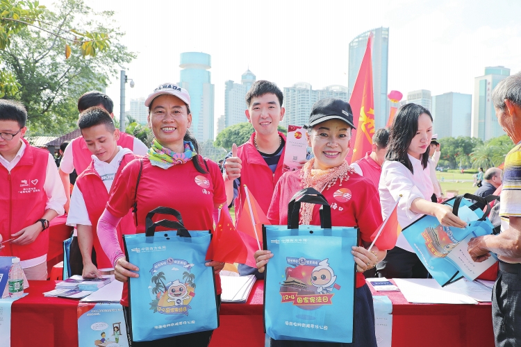 12月1日,海南省暨海口市2019年“憲法宣傳周”活動在??谑腥f綠園啟動,海口供電局在活動現(xiàn)場開展“依法用電、安全用電”宣傳。楊永光 攝