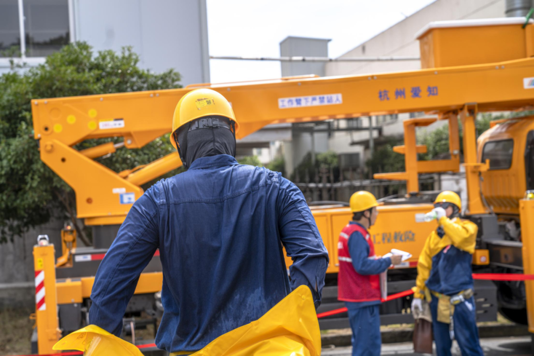 ▲國網(wǎng)浙江電力帶電作業(yè)人員開展帶電搭火作業(yè)