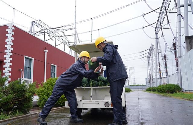 國(guó)網(wǎng)上海超高壓公司員工在±500千伏南橋換流站開(kāi)展防臺(tái)風(fēng)防汛準(zhǔn)備工作。