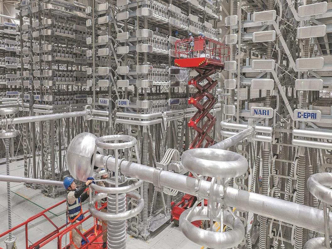 準(zhǔn)東—皖南±1100千伏特高壓直流輸電工程古泉換流站。 國(guó)網(wǎng)特高壓公司供圖