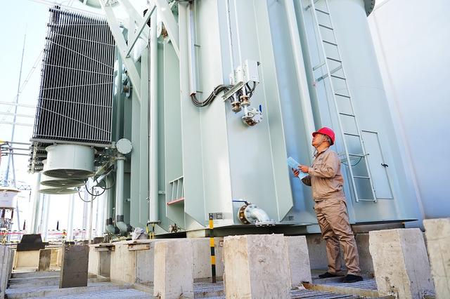 國網天津建設公司員工在蘆臺500千伏變電站擴建工程現(xiàn)場進行主變表計消缺復驗工作。