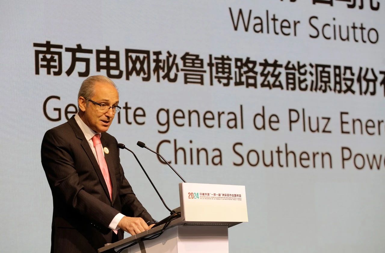 年會期間,公司發(fā)布了中西雙語版《中國式現(xiàn)代化南網(wǎng)新實踐》報告,西語版宣傳片《走在光芒之前》在會場展示傳播,首個境外注冊商標“Pluz(博路茲)”在年會上亮相。會前,與會嘉賓還觀看了中拉共建“一帶一路”務(wù)實合作圖片展,公司多張拉美項目圖片入選展覽。南方電網(wǎng)秘魯博路茲能源股份有限公司(簡稱“秘魯博路茲公司”)總經(jīng)理瓦爾特·休托(Walter Sciutto)受邀在會上發(fā)言。