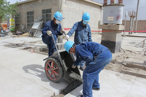 中國電力網(wǎng)訊 “快拉一車混凝土過來,這里還需要一車,大家都把混凝土鏟平了”,4月22日,新疆生產(chǎn)建設(shè)兵團第一師電力有限責(zé)任公司輸變電工區(qū)組織職工自己動手美化家園,員工們都拿著鐵鍬、刮刀等工具在院內(nèi)修補地坪,讓家園更美、更靚。