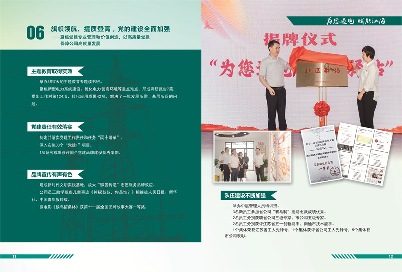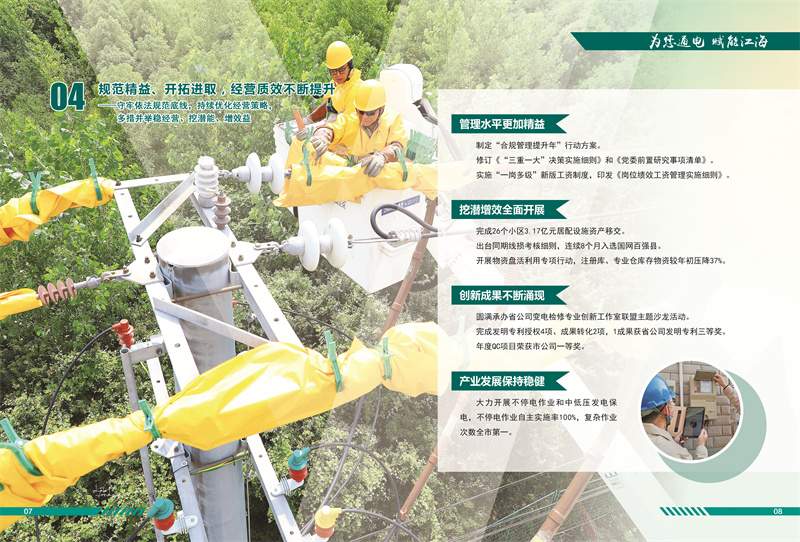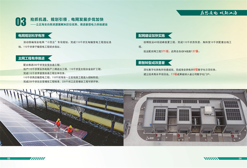 《白皮書》披露,2023年,該公司組織召開海安市迎峰度夏保供工作會(huì)議,深挖非工空調(diào)負(fù)荷調(diào)控潛力,促請政府出臺(tái)需求響應(yīng)、非工負(fù)荷調(diào)節(jié)能力建設(shè)等支持政策。堅(jiān)持“杜絕增量、清除存量”原則,拆除1000千伏泰吳線下方違規(guī)大棚。滾動(dòng)修編海安電網(wǎng)“十四五”專項(xiàng)計(jì)劃,主網(wǎng)工程有序推進(jìn)。深化數(shù)字化供電所創(chuàng)建成效,完成8項(xiàng)數(shù)字化示范任務(wù)。11項(xiàng)成果被納入省公司數(shù)字化門戶。完成發(fā)明專利授權(quán)4項(xiàng)、成果轉(zhuǎn)化2項(xiàng),年度QC項(xiàng)目榮獲市公司一等獎(jiǎng)。深化“開門接電”示范區(qū)建設(shè),全面省級(jí)以上園區(qū)全覆蓋,成立重大項(xiàng)目服務(wù)小組,服務(wù)萬噸冷鏈等14個(gè)省市級(jí)重大項(xiàng)目接電。公司員工助學(xué)殘疾兒童事跡《神秘叔叔,你是誰?》相繼被人民日報(bào)、新華社、中國青年報(bào)等中央媒體相繼轉(zhuǎn)載。
