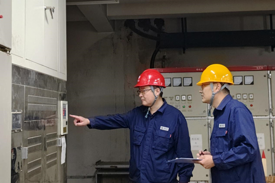 國網(wǎng)石家莊供電公司橋東供配電中心服務(wù)人員對石家莊一中配電室設(shè)備進(jìn)行巡檢。 蘇鳳宇攝