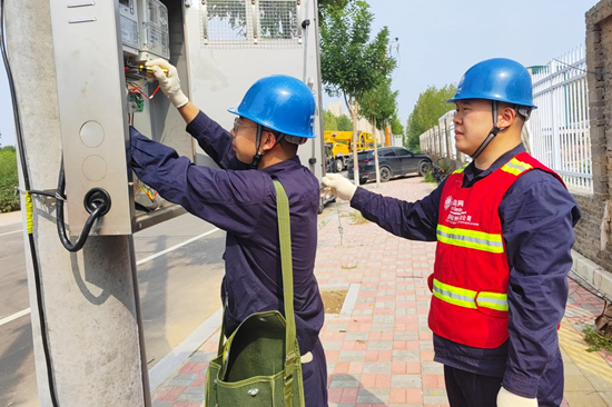 國網(wǎng)石家莊市欒城區(qū)供電公司黨員服務(wù)隊(duì)隊(duì)員為欒城中學(xué)做好開學(xué)前的電力服務(wù)保障。 卞策攝