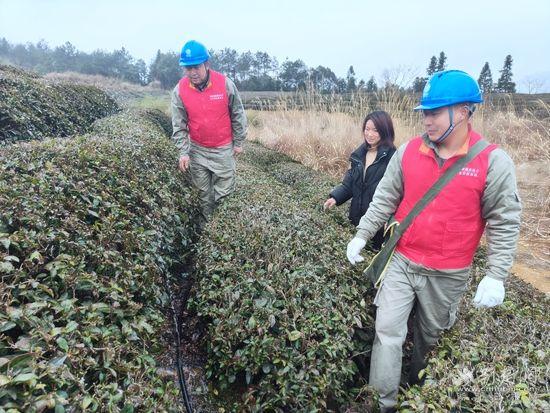 國網(wǎng)咸寧供電公司肖嶺供電所工作人員走進肖嶺鄉(xiāng)泉陂村,對文定茶葉專業(yè)合作社茶葉基地“水肥一體化灌溉系統(tǒng)”的供電線路及用電設(shè)備進行特巡特維,消除安全隱患,全力保障春茶生產(chǎn)用電。