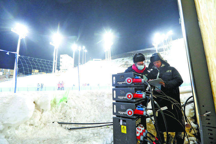 盡管有著嚴(yán)格的流程,供電保障團(tuán)隊(duì)還要不時(shí)應(yīng)對各種突發(fā)情況。雪上競賽的一大特點(diǎn)是變化多——受氣溫、風(fēng)力等因素影響,測試活動(dòng)時(shí)間隨時(shí)可能改變。原定于19時(shí)舉行的雪上技巧測試活動(dòng)最終因大風(fēng)推遲,提前兩小時(shí)到位的值守人員原地等待,在活動(dòng)結(jié)束后1小時(shí)確認(rèn)保電任務(wù)完成,再從賽道撤離。