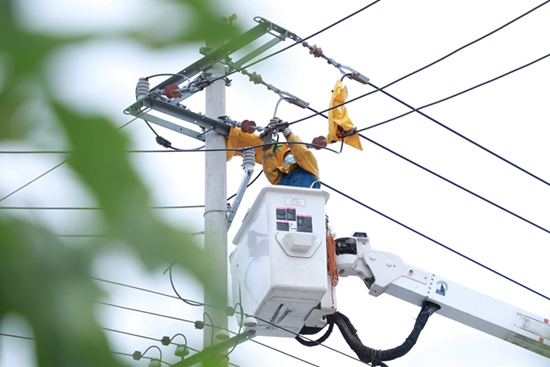 中國電力網(wǎng)訊 5月11日,在濰坊壽光市圣城街道,國網(wǎng)壽光市供電公司帶電作業(yè)人員對(duì)10千伏西玉線增玉支線003號(hào)、004號(hào)桿實(shí)施帶電作業(yè),為某養(yǎng)殖企業(yè)新上變壓器帶電T接引線,保障企業(yè)客戶電力供應(yīng)可靠穩(wěn)定。