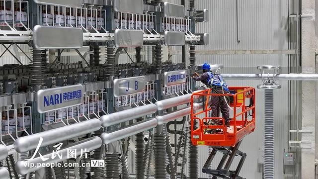 據(jù)悉,±800千伏姑蘇換流站是我國實施“西電東送”戰(zhàn)略的重點工程,起于四川省涼山州布拖縣,止于江蘇省蘇州常熟市,途經(jīng)四川、重慶、湖北、安徽、江蘇5省(直轄市),線路全長2080公里。該站每年將為華東地區(qū)輸送電力超過312億千瓦時,減少發(fā)電用煤1400萬噸,減排二氧化碳2542萬噸,促進全國能源資源的進一步優(yōu)化配置,推動綠色發(fā)展。史俊攝(人民圖片網(wǎng))