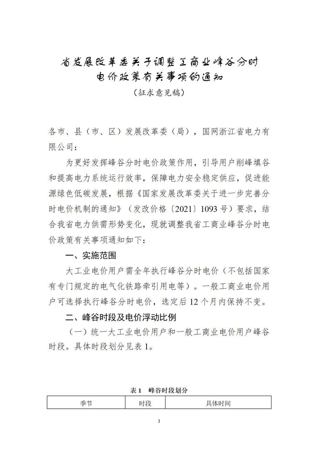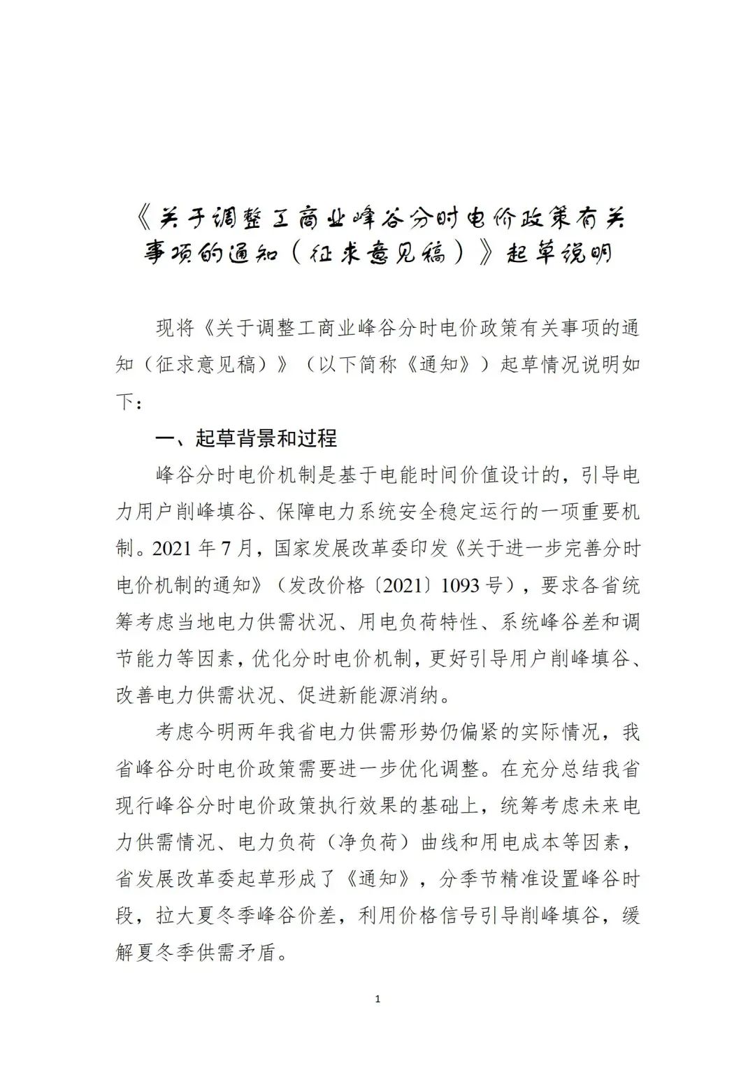 1.關于調整工商業(yè)峰谷分時電價政策有關事項的通知(征求意見稿)